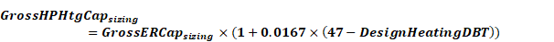 GrossHPHtgCapsizing= the estimated gross heating capacity of the heat pump at 47°F outdoor air temperature