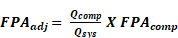 FPAadj = The corrected fan power allowance for the component in w/cfm
